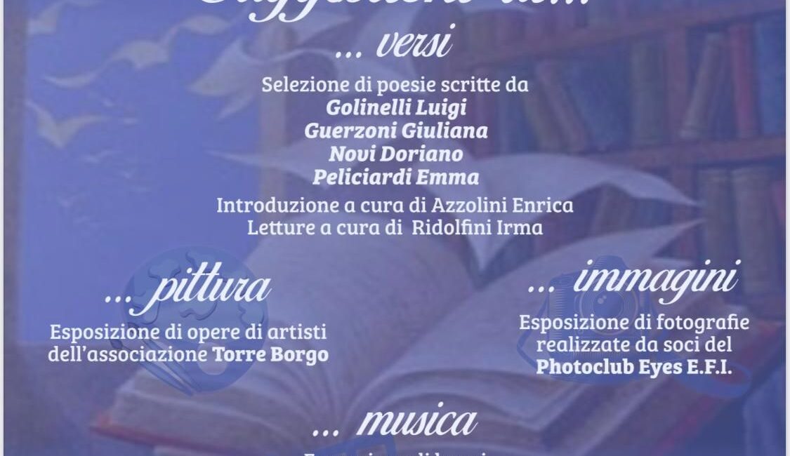 Le loro poesie hanno ispirato i fotografi del Photoclub Eyes, che esporranno i loro scatti “suggeriti” dalle liriche, i pittori di “Torre Borgo” con le loro opere in esposizione e gli allievi della Fondazione scuola di musica Andreoli che, al piano, eseguiranno brani tratti dal repertorio classico e moderno, sempre ispirati dalla lettura dei componimenti.